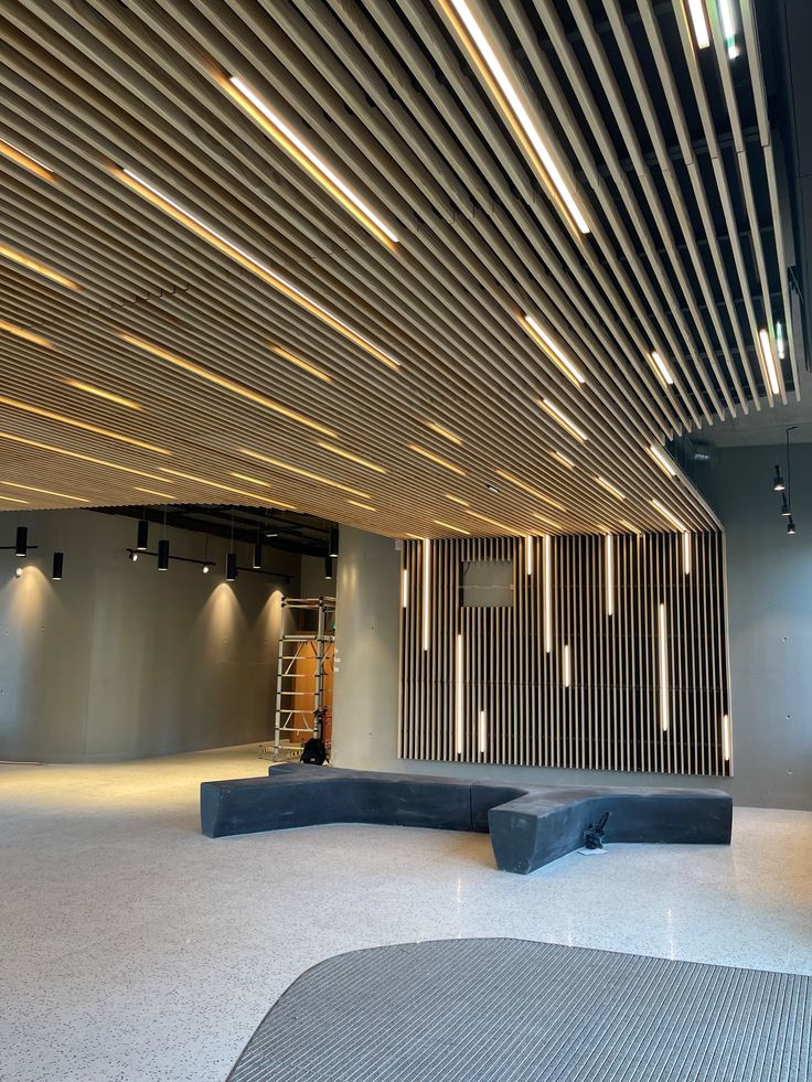 Modern U-shape aluminum alloy baffle ceiling with fireproof and sound-absorbing features. Durable, corrosion-resistant, and ideal for hotels, hospitals, and shopping malls.